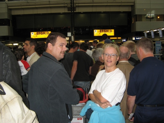 Op het vliegveld van Chicago moesten we bijna een uur wachten |