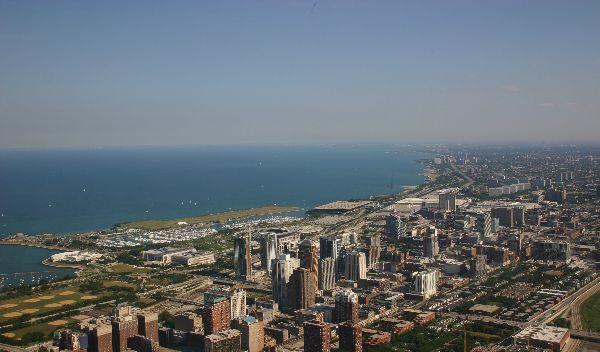 Vanaf de Sears Towers gezien: Opvallend hoe weinig wolkenkrabbers er eigenlijk in het echt zijn. |