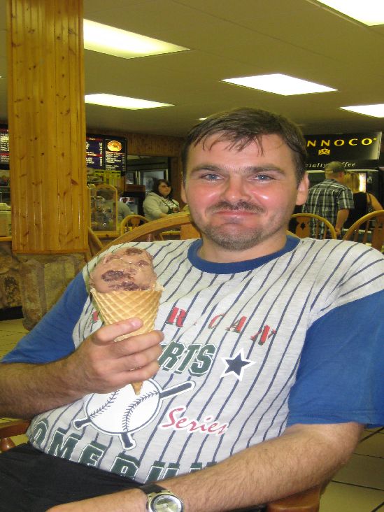 Bram nam een "klein" ijsje. Bij ons in Amerika is alles echt groter. |