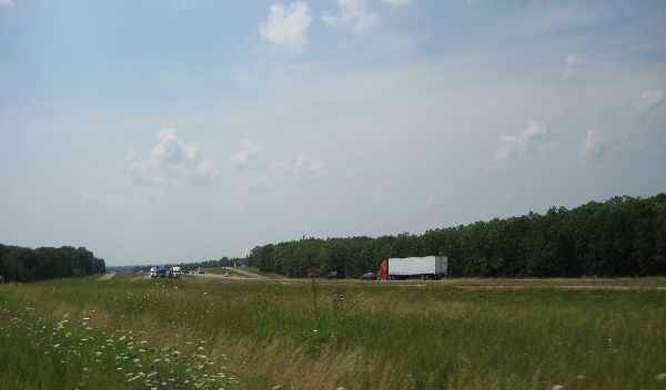 De Route 66 loopt vaak vlak langs de snelweg. |