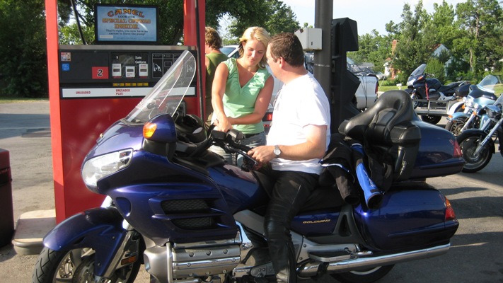 Bij het tanken helpen de bijrijders. |